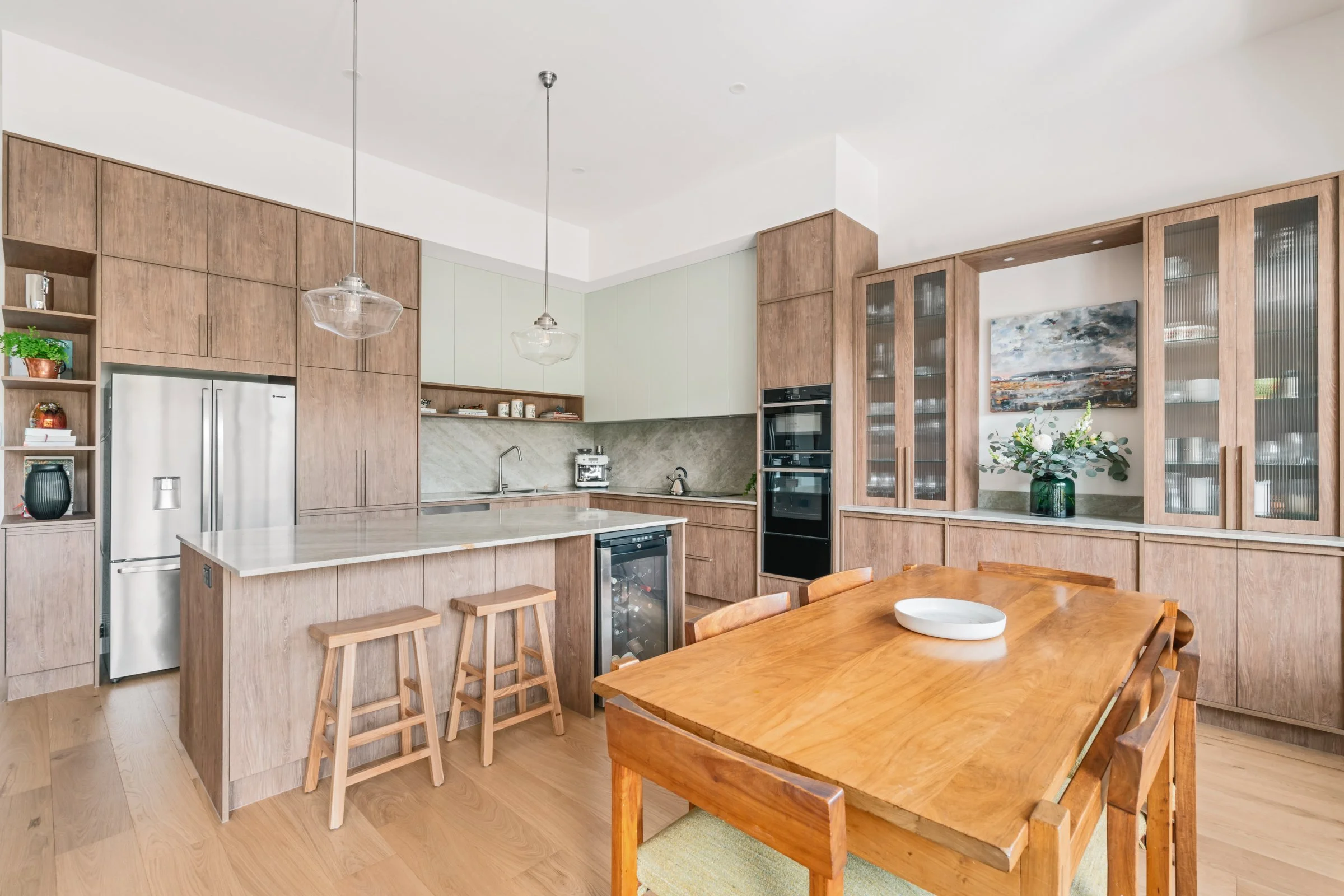 In CLARE, the kitchen and dining space sat right at the heart of family life – visible from the lounge, the outdoor area and the table. The cabinetry was traditional and worn, the flow wasn’t keeping up with how often they entertained, and the dining area didn’t feel anchored. Every time this family sat down, they were looking straight at a space that reminded them of jobs to be done.
